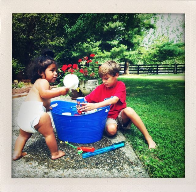 Blake and Cole love to get walkie talkies and hide from the dogs. They have a tons of big trees that work well.
